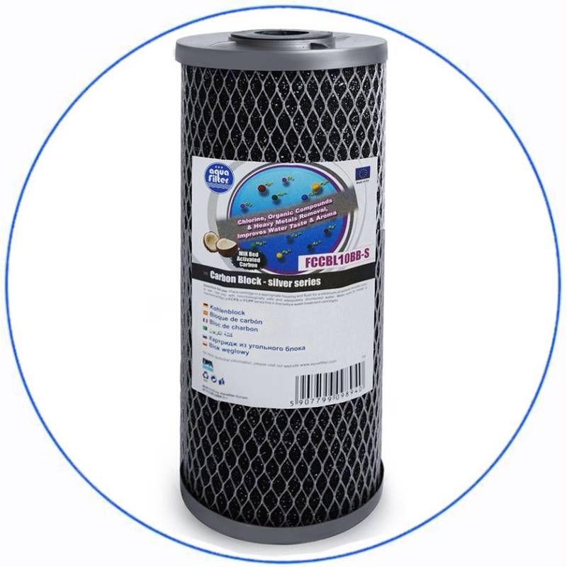 Συμπαγής ενεργός άνθρακας κατασκευασμένος από υψηλής ποιότητας πρώτες ύλες, παρέχει: Αφαιρεί έως και το 99% του χλωρίου στο νερό. Αφαίρεση οργανικών ρύπων. Κατάργηση φαινόλης και βενζολίου. Περιέχει ένα μείγμα από βιταμινούχο άνθρακα από κέλυφος καρύδας. Αφαιρεί βαρέα μέταλλα (Pb, Cu, Hg, Sr, Cs). Μαλακώνει το νερό. Παρέχει εξαιρετικό φιλτράρισμα με χαμηλή πτώση πίεσης. Αφαιρεί έως και το 85% των νιτρικών με βάση τα φυτοφάρμακα. Αφαιρεί μηχανικές προσμίξεις (σκουριά, λάσπη, κλπ.) από 5 έως 10 μικρά. Βελτιώνει τη γεύση και την οσμή του νερού. Σημαντικά μεγαλύτερη διάρκεια ζωής 12 μήνες ή 12.000 λίτρα.