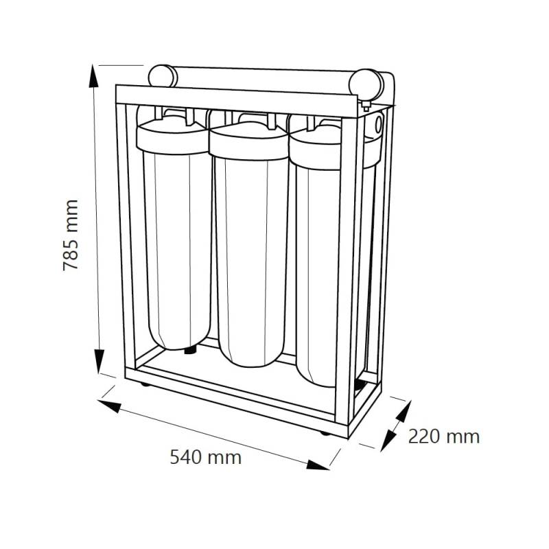 Το σύστημα αποτελείται από μια τριπλή φιλτροθήκη η οποία τοποθετείται στην κεντρική παροχή σας και περιλαμβάνει τα εξής φίλτρα: