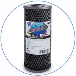 Big Blue 10''x4.5'' Φίλτρο ενεργού άνθρακα FCCBL-S της Aqua Filter. Συμπαγής ενεργός άνθρακας κατασκευασμένος από υψηλής ποιότητας πρώτες ύλες, παρέχει: Αφαιρεί έως και το 99% του χλωρίου στο νερό. Αφαίρεση οργανικών ρύπων. Κατάργηση φαινόλης και βενζολίου. Περιέχει ένα μείγμα από βιταμινούχο άνθρακα από κέλυφος καρύδας. Αφαιρεί βαρέα μέταλλα (Pb, Cu, Hg, Sr, Cs). Μαλακώνει το νερό. Παρέχει εξαιρετικό φιλτράρισμα με χαμηλή πτώση πίεσης. Αφαιρεί έως και το 85% των νιτρικών με βάση τα φυτοφάρμακα. Αφαιρεί μηχανικές προσμίξεις (σκουριά, λάσπη, κλπ.) από 5 έως 10 μικρά. Βελτιώνει τη γεύση και την οσμή του νερού. Σημαντικά μεγαλύτερη διάρκεια ζωής 12 μήνες ή 12.000 λίτρα.
