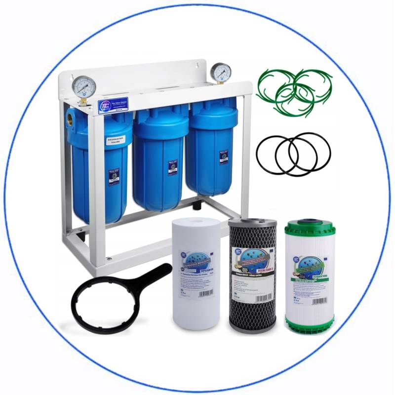 Το σύστημα της Aqua Filter BBF319 αποτελείται από μια τριπλή φιλτροθήκη η οποία τοποθετείται στην κεντρική παροχή σας και περιλαμβάνει τα εξής φίλτρα της Aqua Filter: