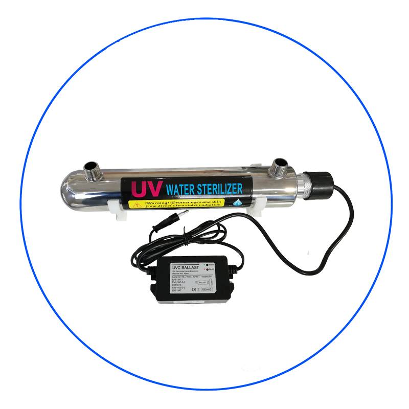 8ο στάδιο: Οι υπεριώδεις ακτινοβολίες ανακαλύφθηκαν πριν από περίπου 200 χρόνια. Μετά από χρόνια πειραμάτων και ερευνών, η επιστήμη επιβεβαιώνει ότι είναι ένας εξαιρετικός τρόπος εξάλειψης των ιών και βακτηριδίων. Η υπεριώδης ακτινοβολία χωρίζεται σε 3 κύματα, τα A, B, και C κύματα. Τα 240-260nm της ακτίνας C είναι τα πιο αποτελεσματικά με το πιο δυνατό σημείο να βρίσκεται στα 253,7nm. Η Λάμπα UV της Aqua Pure εμποδίζει την ανάπτυξη των βακτηριδίων, καταστρέφοντας τον πυρήνα του DNA τους, με αποτέλεσμα να είναι αδύνατη η αναπαραγωγή τους. Αυτή η τεχνολογία είναι πολύ αποτελεσματική για την καταπολέμηση των βακτηρίων, καθώς και για πολλούς ανθεκτικούς παθογόνους μικροοργανισμούς. Αναφέρουμε ενδεικτικά μερικούς: E. Coli, Legionella, Salmonella, Hepatitis, Poliovirus κ.α. Αλλαγή κάθε 9.000 ώρες λειτουργίας.