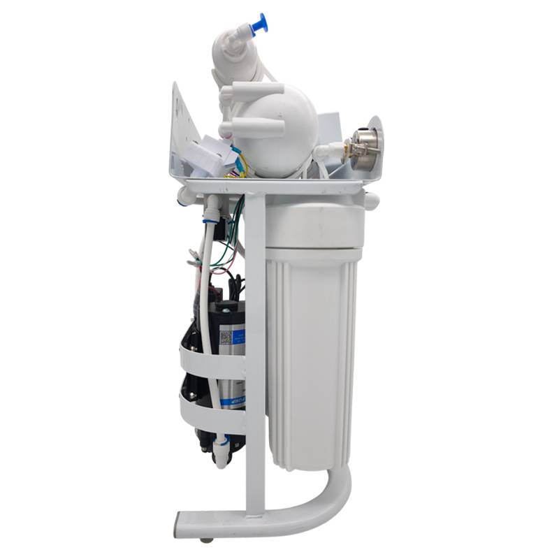 Ένα πλήρες και αξιόπιστο μοντέλο αντίστροφης όσμωσης οκτώ σταδίων με αντλία νερού και δοχείο αποθήκευσης 11 λίτρων για τοποθέτηση κάτω από τον πάγκο της κουζίνας. Η αντίστροφη όσμωση αποτελεί την καλύτερη μέθοδο καθαρισμού του νερού βρύσης. Tα επτά στάδια φίλτρανσης του συστήματος επιτυγχάνουν τη δραστική μείωση έως και 97% των εξής στοιχείων: Χρώμιο, Χλώριο, Αρσενικό Αργίλιο, Αμμωνία, Χαλκό, Υδράργυρο, Ουράνιο, Φυτοφάρμακα, Φωσφορικά, Βακτηρίδια, Βάριο, Βενζόλιο, Διττανθρακικό άλας, Βορικό άλας (βόριο), Βρώμιο (βρωμίδιο), Κάδμιο, Ασβέστιο, Διοξείδιο του άνθρακα, Carbontetrachloride, Χλωρίδιο, Χρώμα,Κυάνιο, Cyptosporidium, Φθορίδιο, Giardia Lamblia. Επίσης, Σουλφίδιο υδρογόνου, Σίδηρος, Μόλυβδος, Legionella, Μαγνήσιο, Μαγγάνιο, Υδράργυρος, Μεθάνιο, Νικέλιο, Νιτρικό άλας, Νιτρώδες άλας, Μυρωδιά, Οργανικές ουσίες, Κάλιο, Ράδιο, Ραδόνιο, Selentum, Πυρίτιο, Ασήμι, SOC, Νάτριο, Στρόντιο, Θειικό άλας, THM, TOC, Διαλυμένα στερεά, Θολούρα, Ιοί, VOCs, κ.α. Αναλυτικότερα, το σύστημα είναι εξοπλισμένο με τα εξής οκτώ στάδια φίλτρανσης: